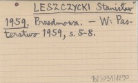 LESZCZYCKI Stanisław 1976 Karel Kuchař. 15 IV 1906 - 16 IV 1975.
