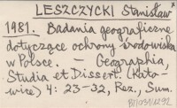LESZCZYCKI Stanisław 1981 Badania geograficzne dotyczące ochrony środowiska w Polsce.