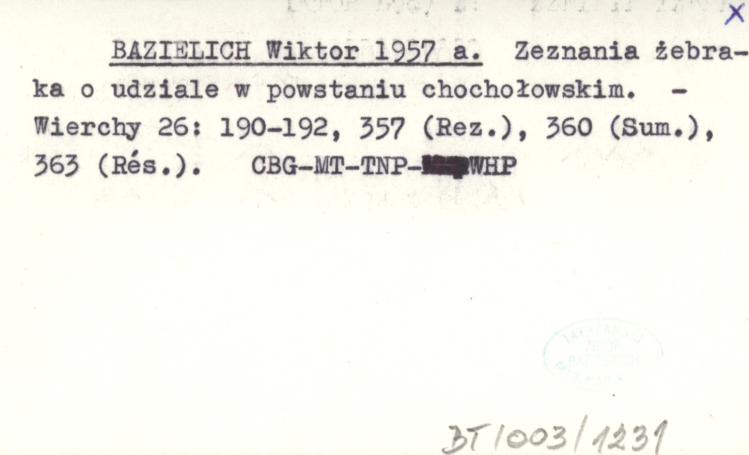 Projekt Digitalizacja fiszek z Bibliografią Tatr i Podtatrza Witolda Henryka Paryskiego jest finansowany ze środków Ministra Kultury i Dziedzictwa Narodowego oraz Tatrzańskiego Parku Narodowego.