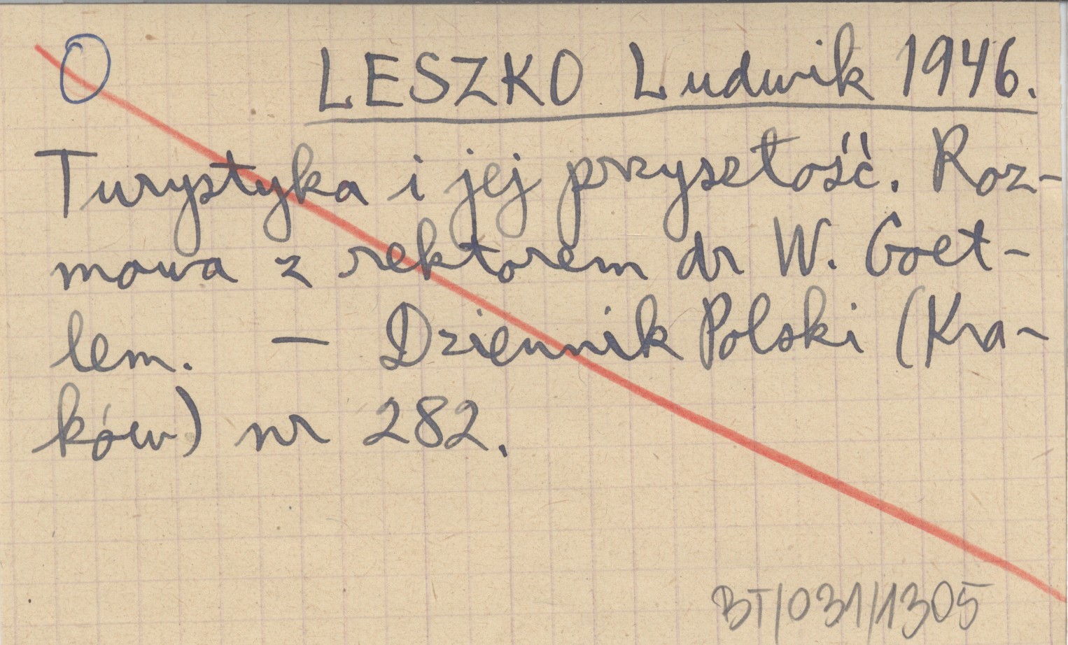LESZKO Ludwik 1946 Turystyka i jej przyszłość. Rozmowa z rektorem dr W. Goetlem.