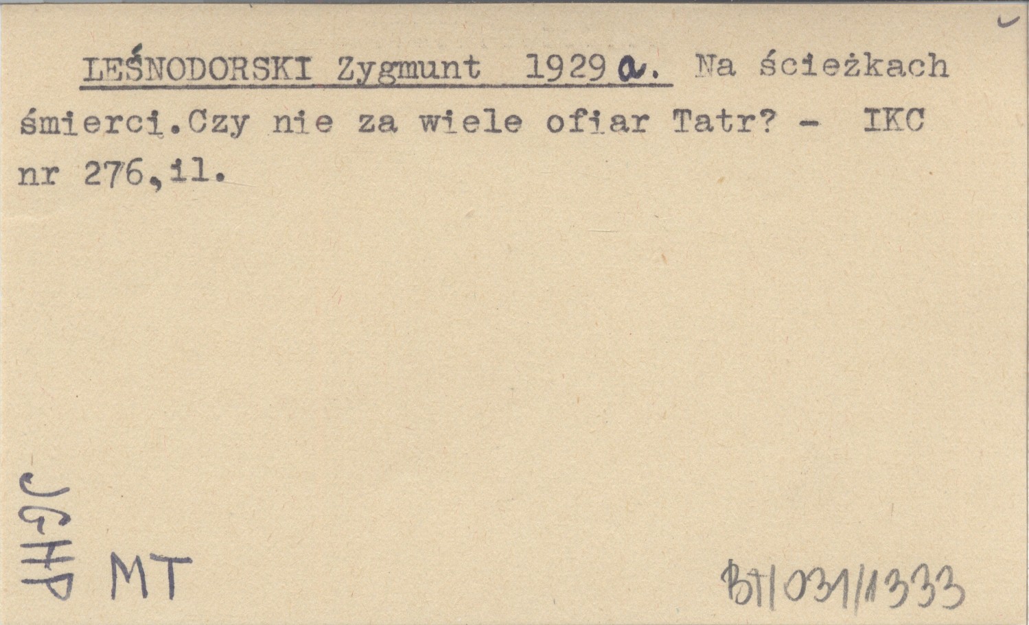 LEŚNODORSKI Zygmunt 1929 a Na ścieżkach śmierci. Czy nie za wiele ofiar Tatr?