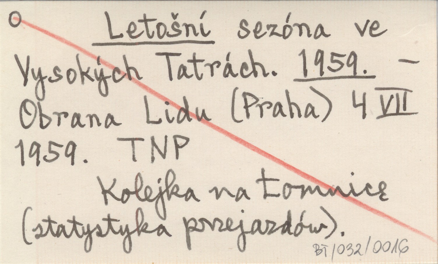 Obrana Lidu (Praha) , 4 VII 1959. Kolejka na Łomnicę (statystyka przejazdów).