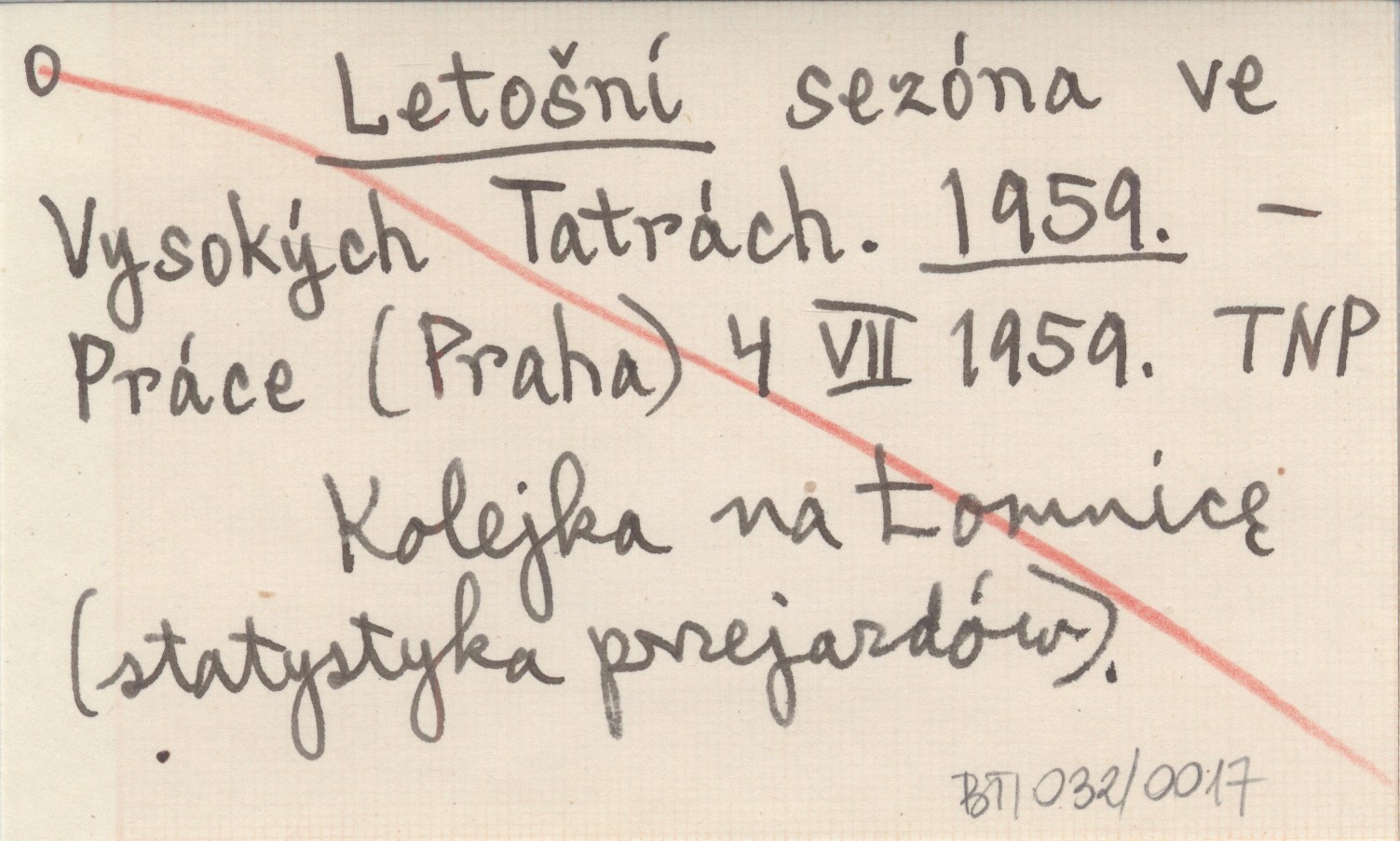 Práce (Praha) , 4 VII 1959. Kolejka na Łomnicę (statystyka przejazdów).