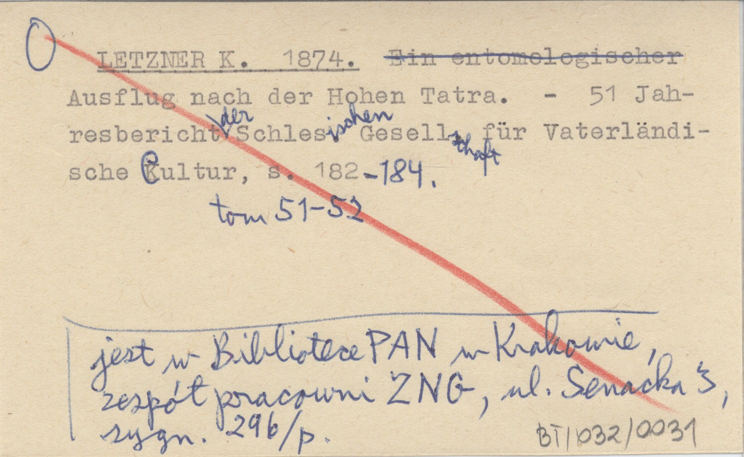 51 Jahresbericht der Schlesischen Gesellschaft für Vaterländische Cultur, T. 51-52: 182-184. Jest w Bibliotece PAN w Krakowie, zespół pracowni ZNG, ul. Senacka 3, sygn. 296/p.