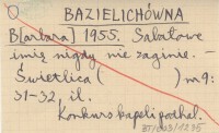 BAZIELICHÓWNA B[arbara] 1955 Sabałowe imię nigdy nie zaginie.
