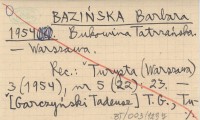 BAZIŃSKA Barbara 1954 Bukowina Tatrzańska.