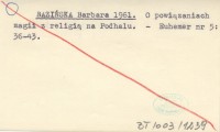 BAZIŃSKA Barbara 1961 O powiązaniach magii z religią na Podhalu.