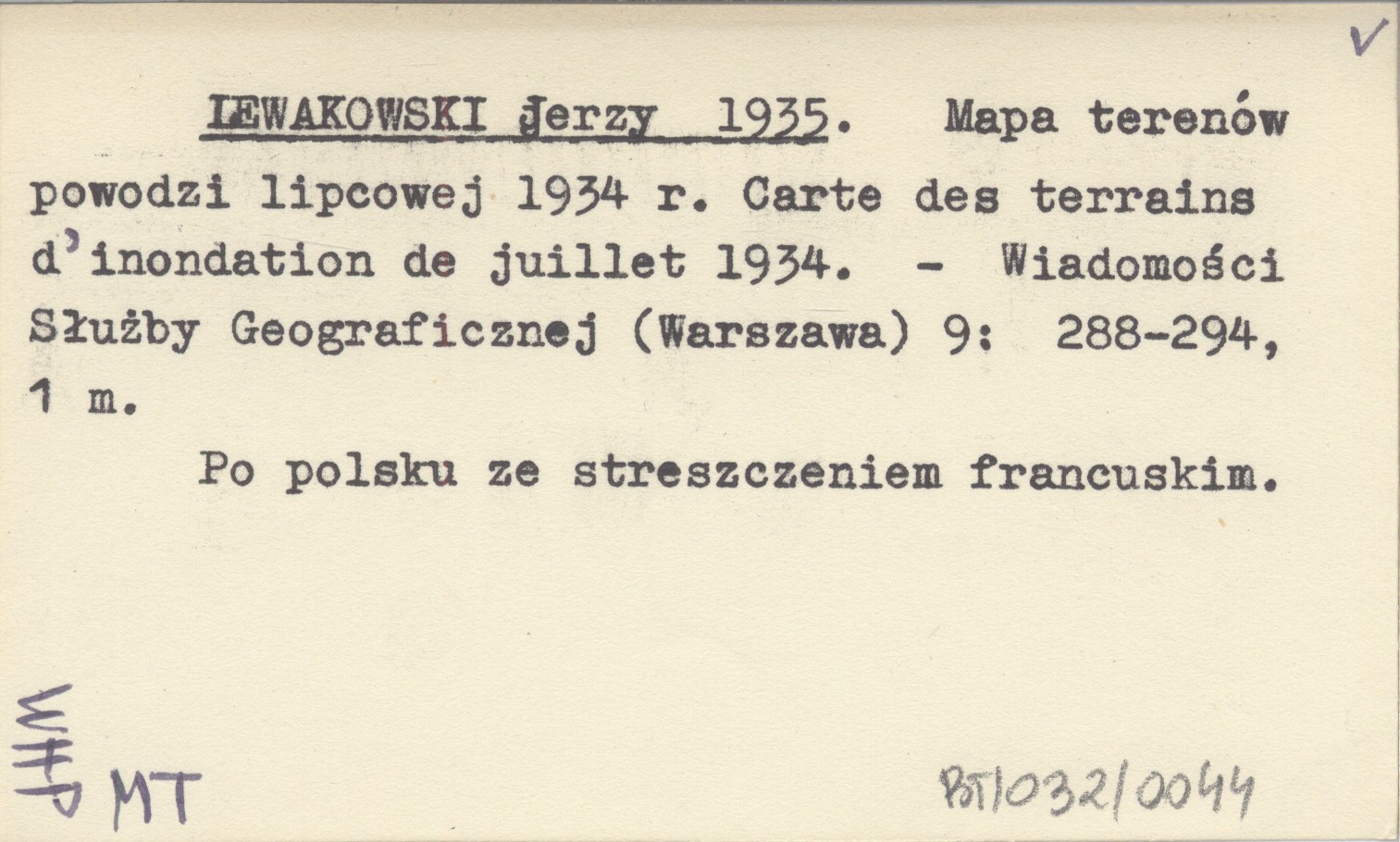 Wiadomości Służby Geograficznej (Warszawa) , 9: 288-294, 1 mapa. Po polsku ze streszczeniem francuskim.