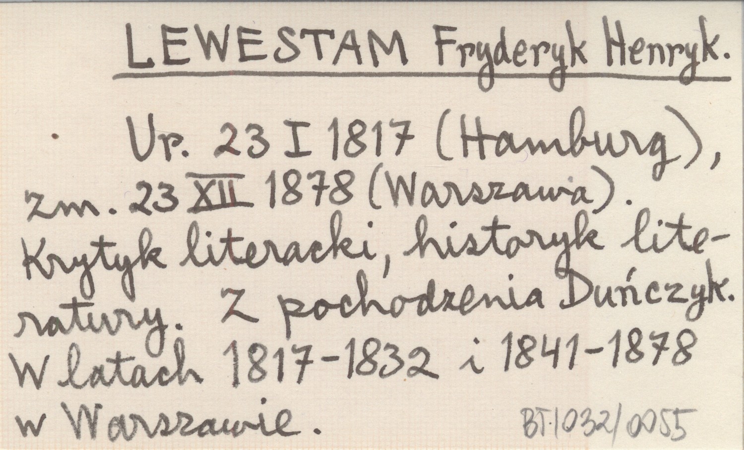 Ur. 23 I 1817 (Hamburg), zm. 23 XII 1878 (Warszawa). Krytyk literacki, historyk literatury. Z pochodzenia Duńczyk. W latach 1817-1832 i 1841-1878 w Warszawie.