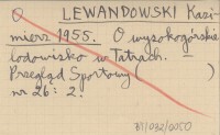 LEWANDOWSKI Kazimierz 1955 O wysokogórskie lodowisko w Tatrach.