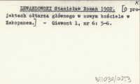 LEWANDOWSKI Stanisław Roman 1902 [O projektach ołtarza głównego w nowym kościele w Zakopanem.]