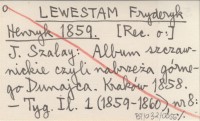 LEWESTAM Fryderyk Henryk 1859 [Rec. o:] J. Szalay: Album szczawnickie czyli nabrzeża górnego Dunajca. Kraków 1858.