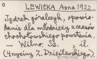 LEWICKA Anna 1922... Jędrek góralczyk, opowiadanie dla młodzieży z czasów chochołowskiego powstania.