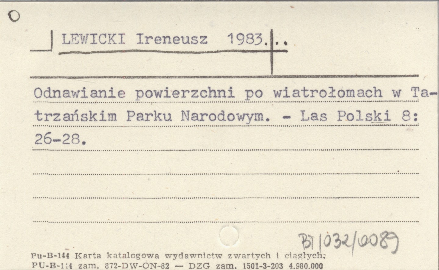 LEWICKI Ireneusz 1983... Odnawianie powierzchni po wiatrołomach w Tatrzańskim Parku Narodowym.
