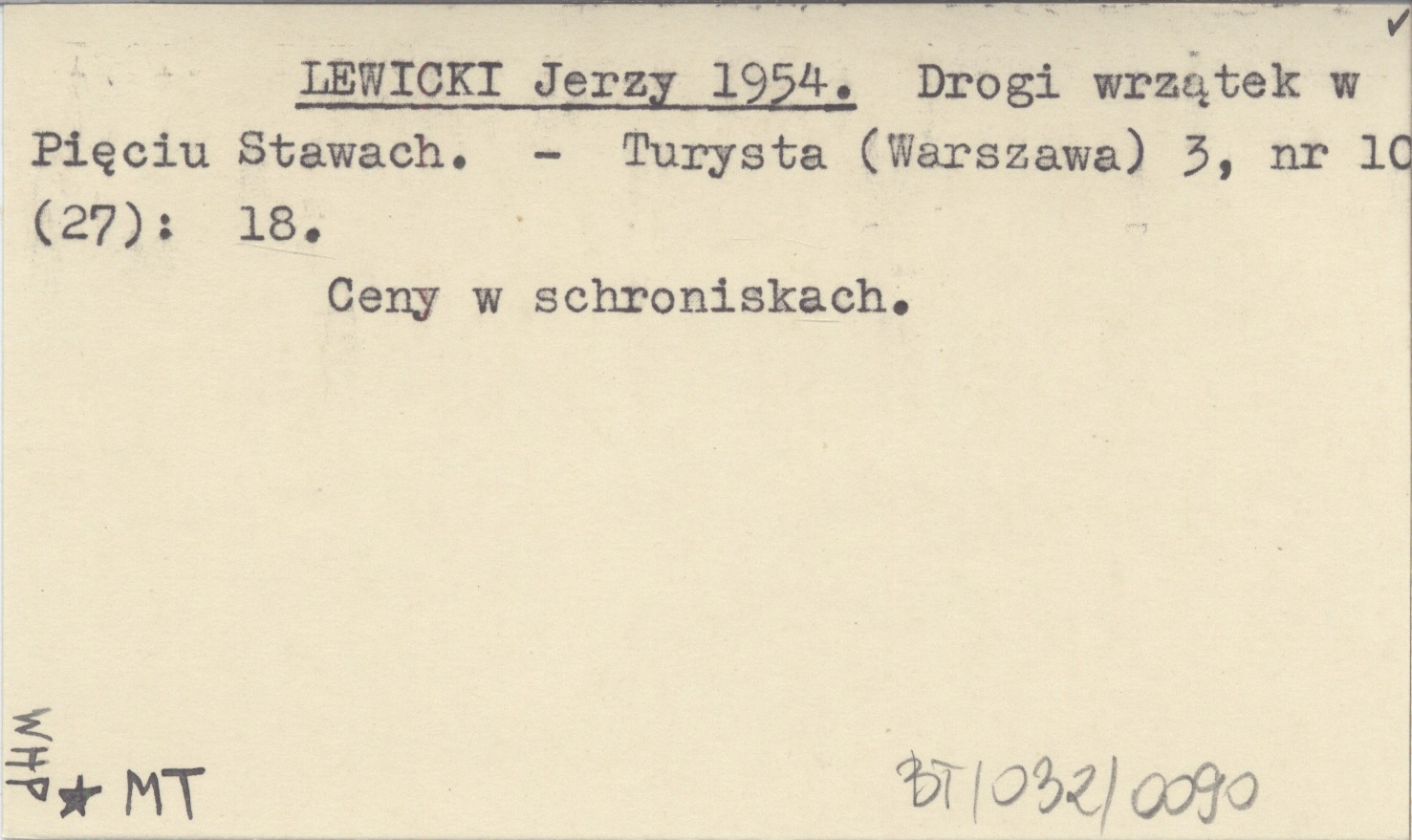 LEWICKI Jerzy 1954 Drogi wrzątek w Pięciu Stawach.