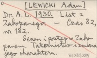 Dr. A. L. [LEWICKI Adam] 1930 List z Zakopanego.