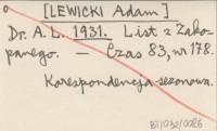 Dr. A. L. [LEWICKI Adam] 1931 List z Zakopanego.