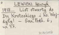 LEWICKI Henryk 1918... List otwarty do Dr. Krotoskiego i ks. Wojdyły!