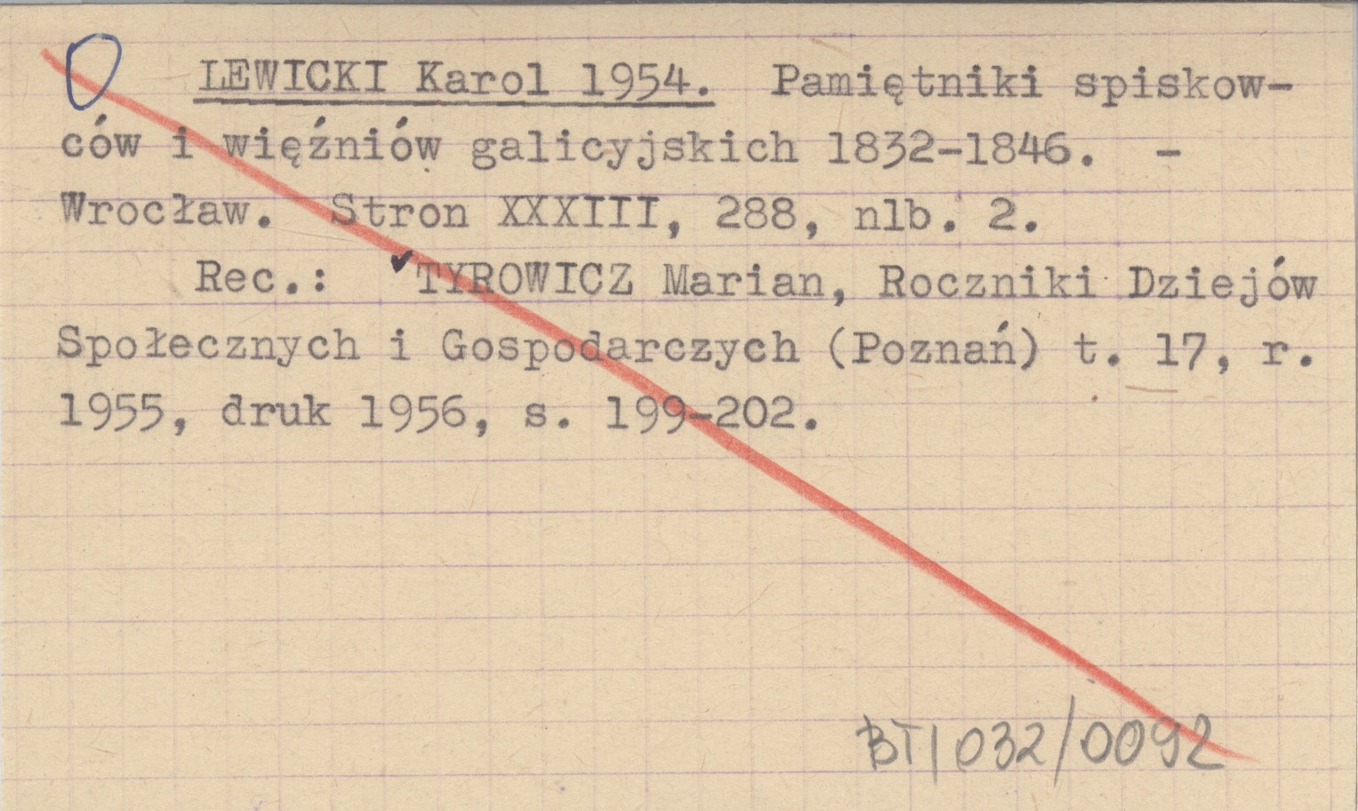 LEWICKI Karol 1954 Pamiętniki spiskowców i więźniów galicyjskich 1832-1846.