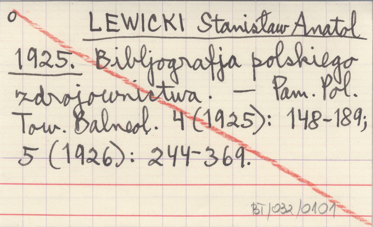LEWICKI Stanisław Anatol 1925 Bibljografja polskiego zdrojownictwa.