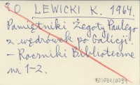 LEWICKI K. 1964 Pamiętniki Żegoty Paulego z wędrówek po Galicji.