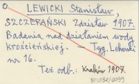 LEWICKI Stanisław SZCZEPAŃSKI, Zdzisław. ; 1907 Badania nad działaniem wody krościeńskiej.