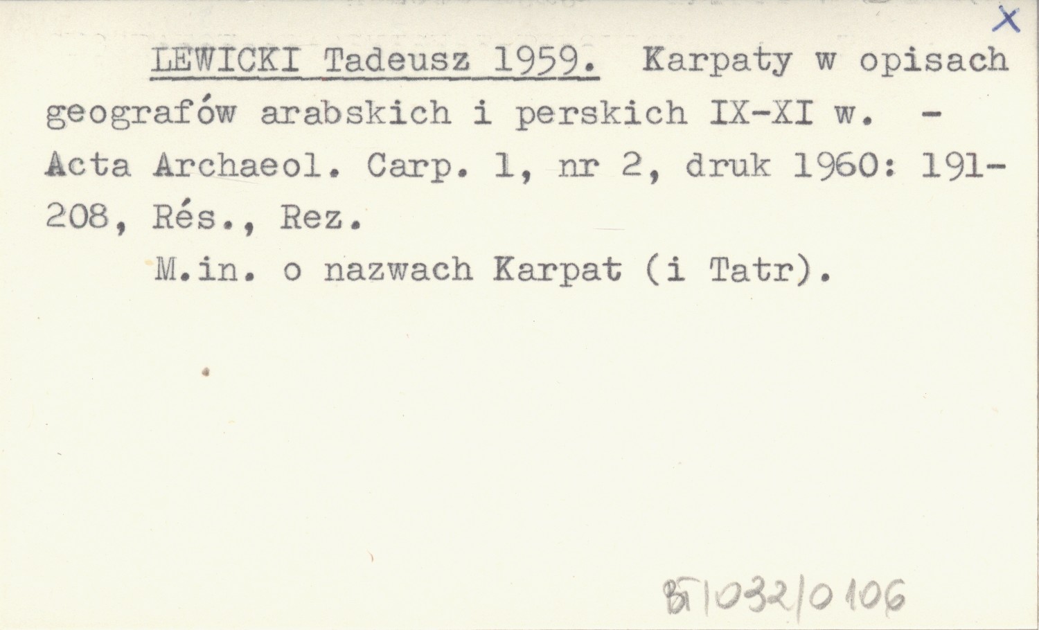 LEWICKI Tadeusz 1959 Karpaty w opisach geografów arabskich i perskich IX-XI w.