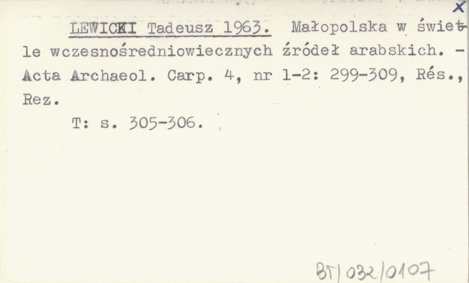 LEWICKI Tadeusz 1963 Małopolska w świetle wczesnośredniowiecznych źródeł arabskich.