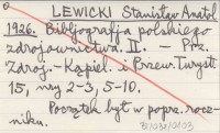 LEWICKI Stanisław Anatol 1926 Bibljografja polskiego zdrojownictwa. II.