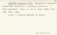 LEWICKI Tadeusz 1959 Karpaty w opisach geografów arabskich i perskich IX-XI w.