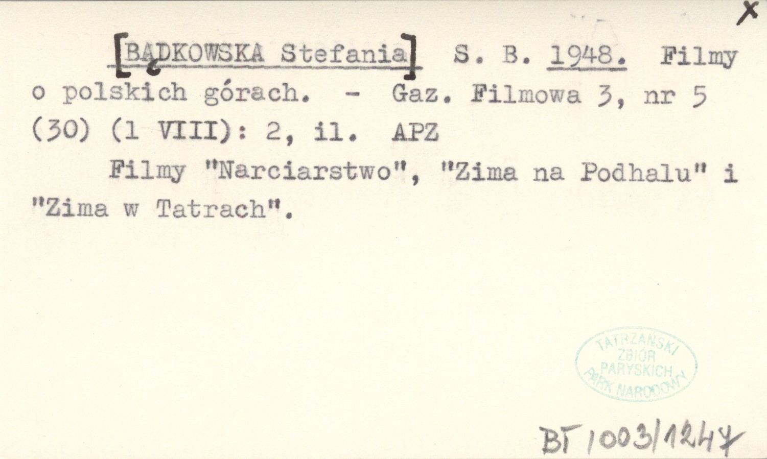S. B. [BĄDKOWSKA Stefania] 1948 Filmy o polskich górach.