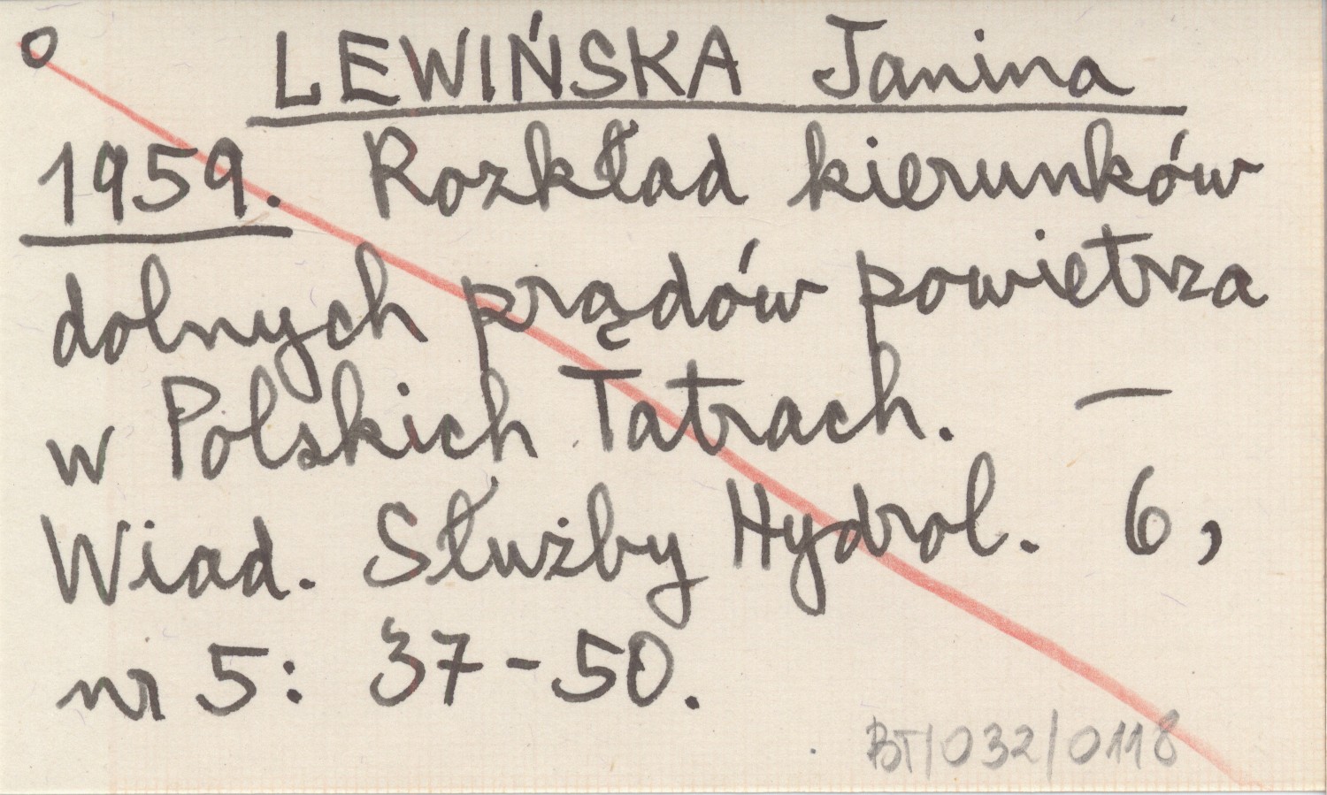 LEWIŃSKA Janina 1959 Rozkład kierunków dolnych prądów powietrza w Polskich Tatrach.