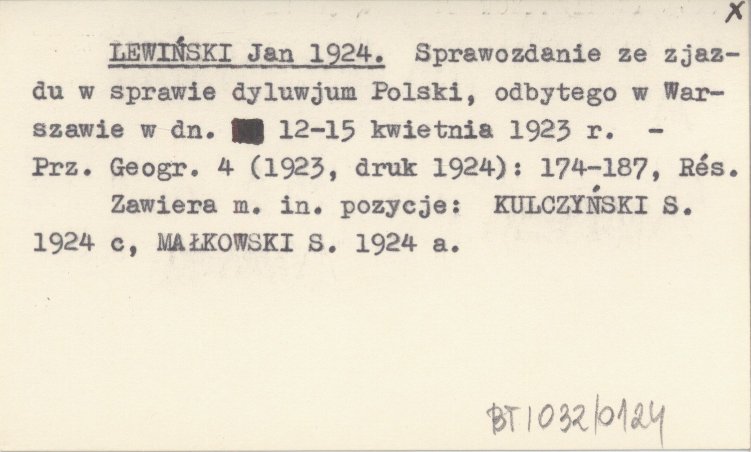 Przegląd Geograficzny, 4 (1923, druk 1924): 174-187, Rés. Zawiera m. in. pozycje: KULCZYŃSKI S. 1924 c, MAŁKOWSKI S. 1924 a.