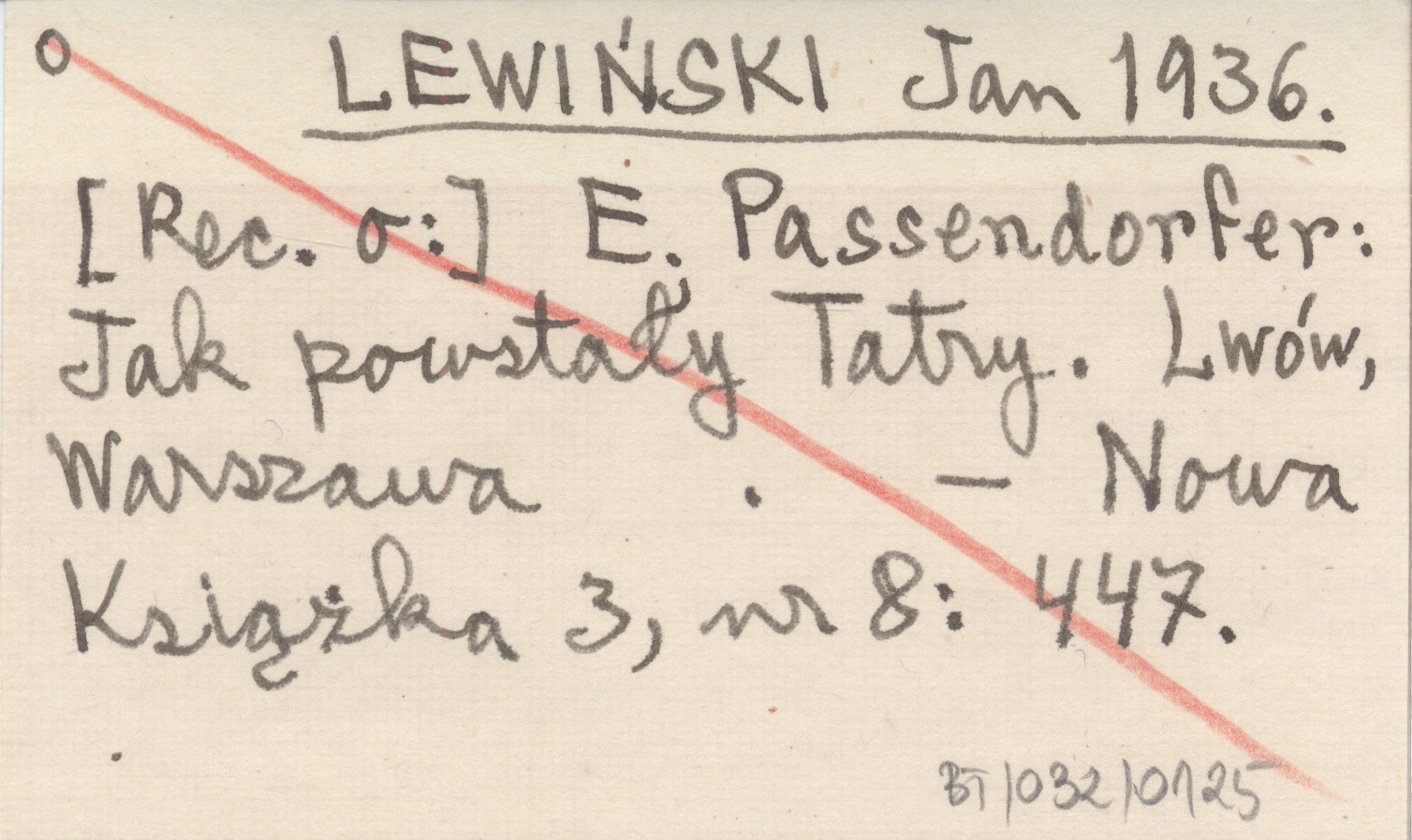 LEWIŃSKI Jan 1936 [Rec. o:] E. Passendorfer: Jak powstały Tatry. Lwów, Warszawa.