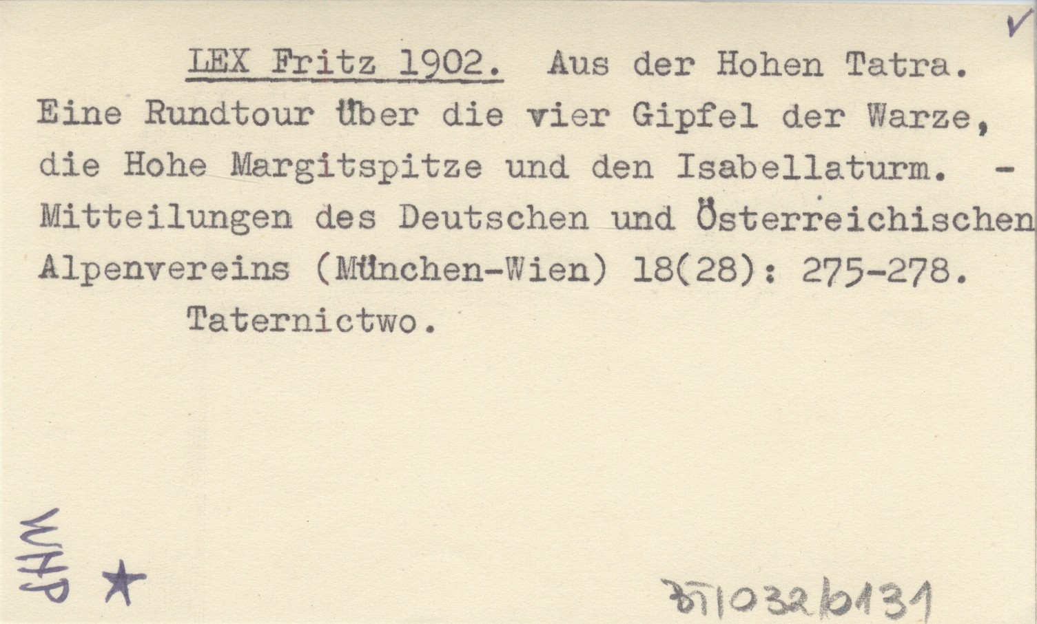Mitteilungen des Deutschen und Österreichischen Alpenvereins (München ; Wien ;) , 18 (28): 275-278. Taternictwo.