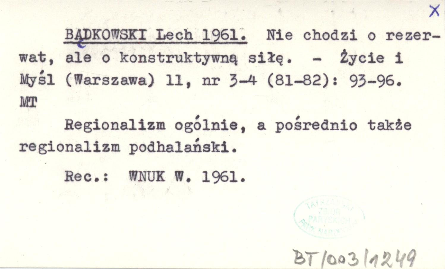 Życie i Myśl (Warszawa) , 11, nr 3-4 (81-82): 93-96. Regionalizm ogólnie, a pośrednio także regionalizm podhalański. REC: WNUK W. 1961.