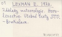 LEXMAN E. 1972 Základy meteorologie. Horolezectvo. Učebné texty STO.