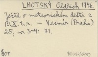LHOTSKÝ Oldřich 1946 Ještě o meteorickém dešti z 10.X. t.r.