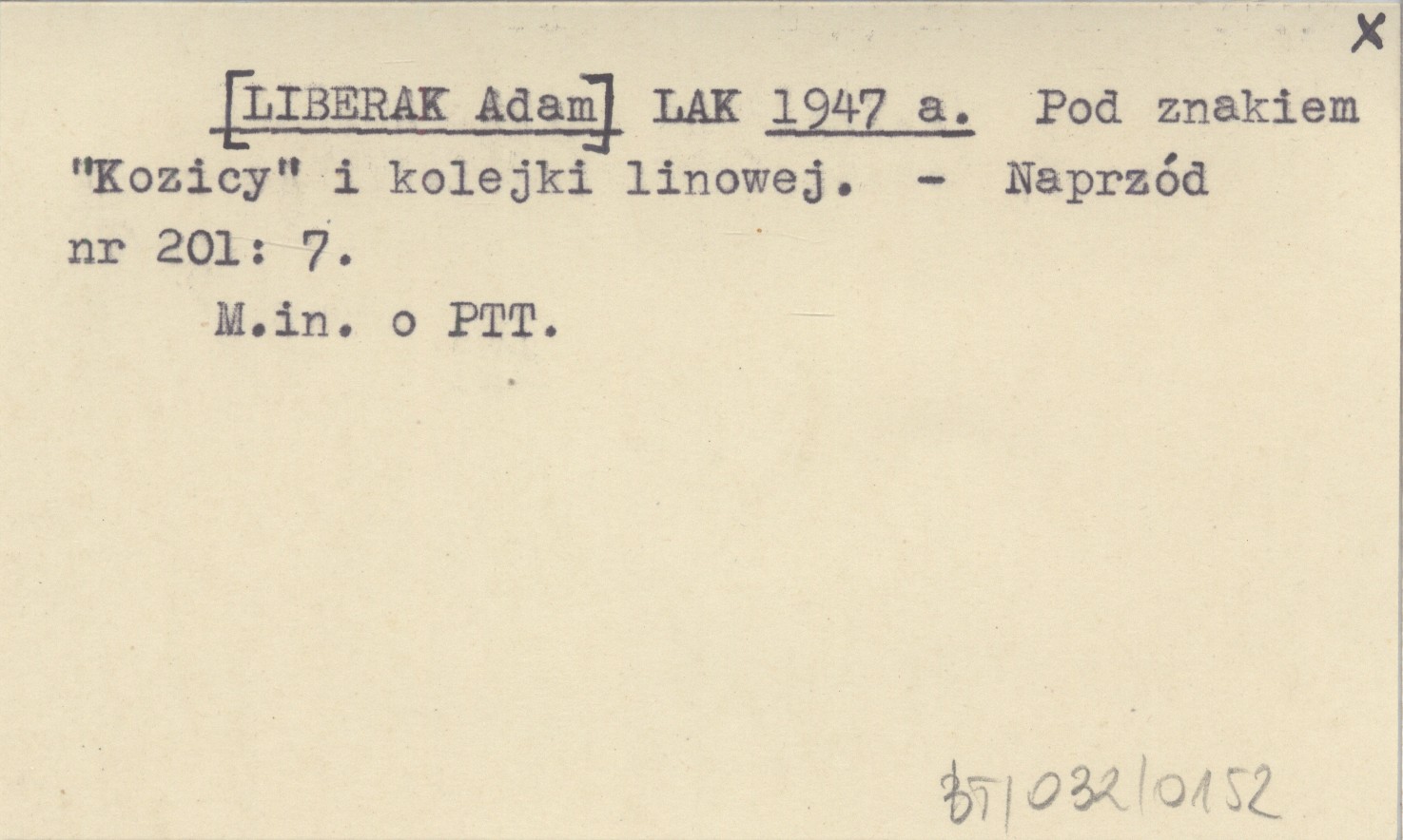 LAK [LIBERAK Adam] 1947 a Pod znakiem "Kozicy" i kolejki linowej.