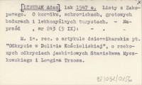 lak [LIBERAK Adam] 1947 e Listy z Zakopanego. O korniku, schroniskach, grotowych bzdurach i lekkomyślnych turystach.