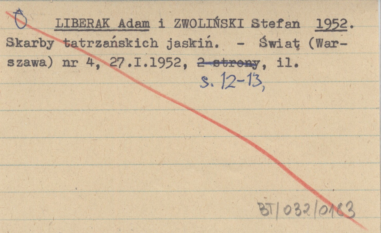 LIBERAK Adam ZWOLIŃSKI, Stefan. ; 1952 Skarby tatrzańskich jaskiń.