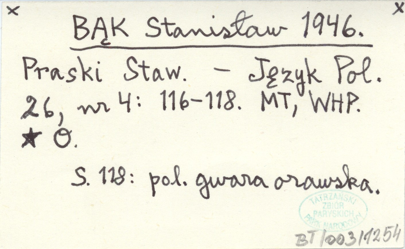 Język Polski, 26, nr 4: 116-118. S. 118: pol. gwara orawska.