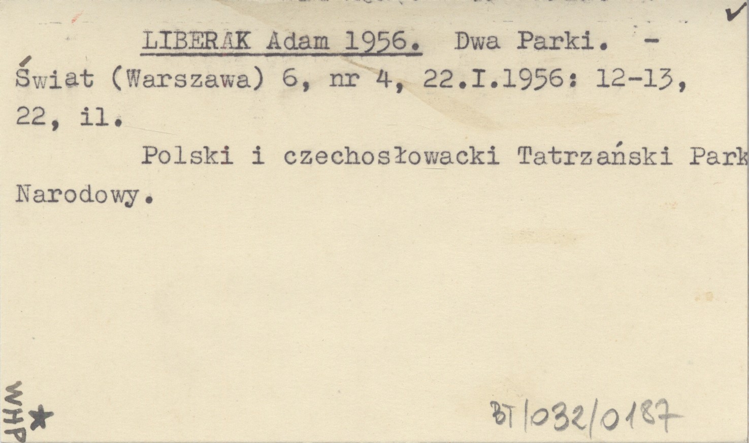 Świat (Warszawa) , 6, nr 4 (22 I 1956): 12-13, 22, il. Polski i czechosłowacki Tatrzański Park Narodowy.