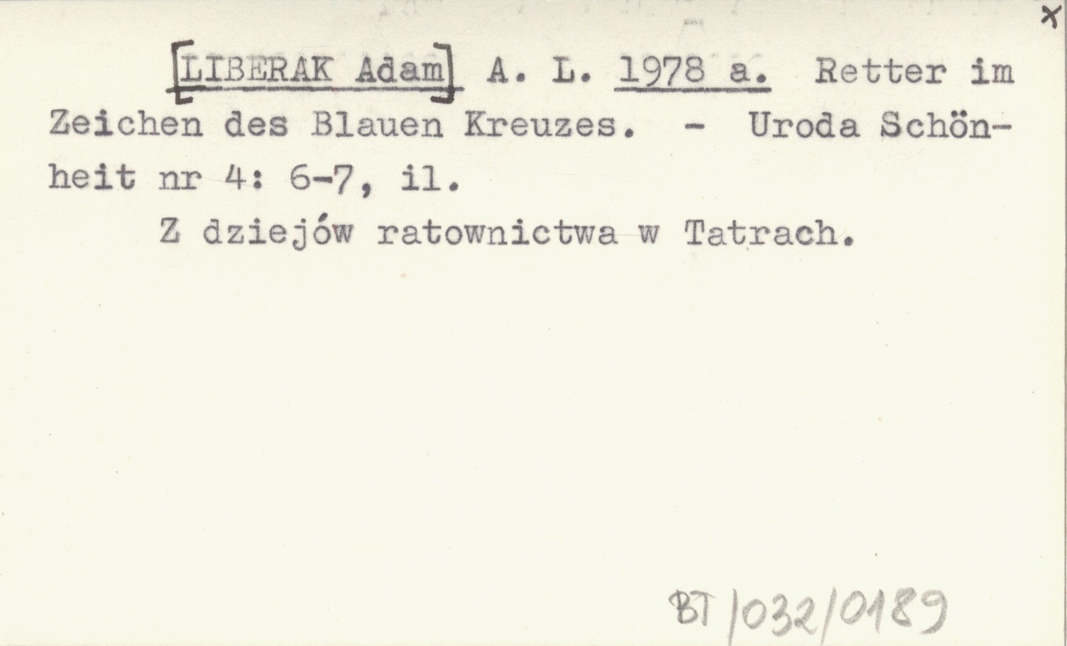 A. L. [LIBERAK Adam] 1978 a Retter im Zeichen des Blauen Kreuzes.