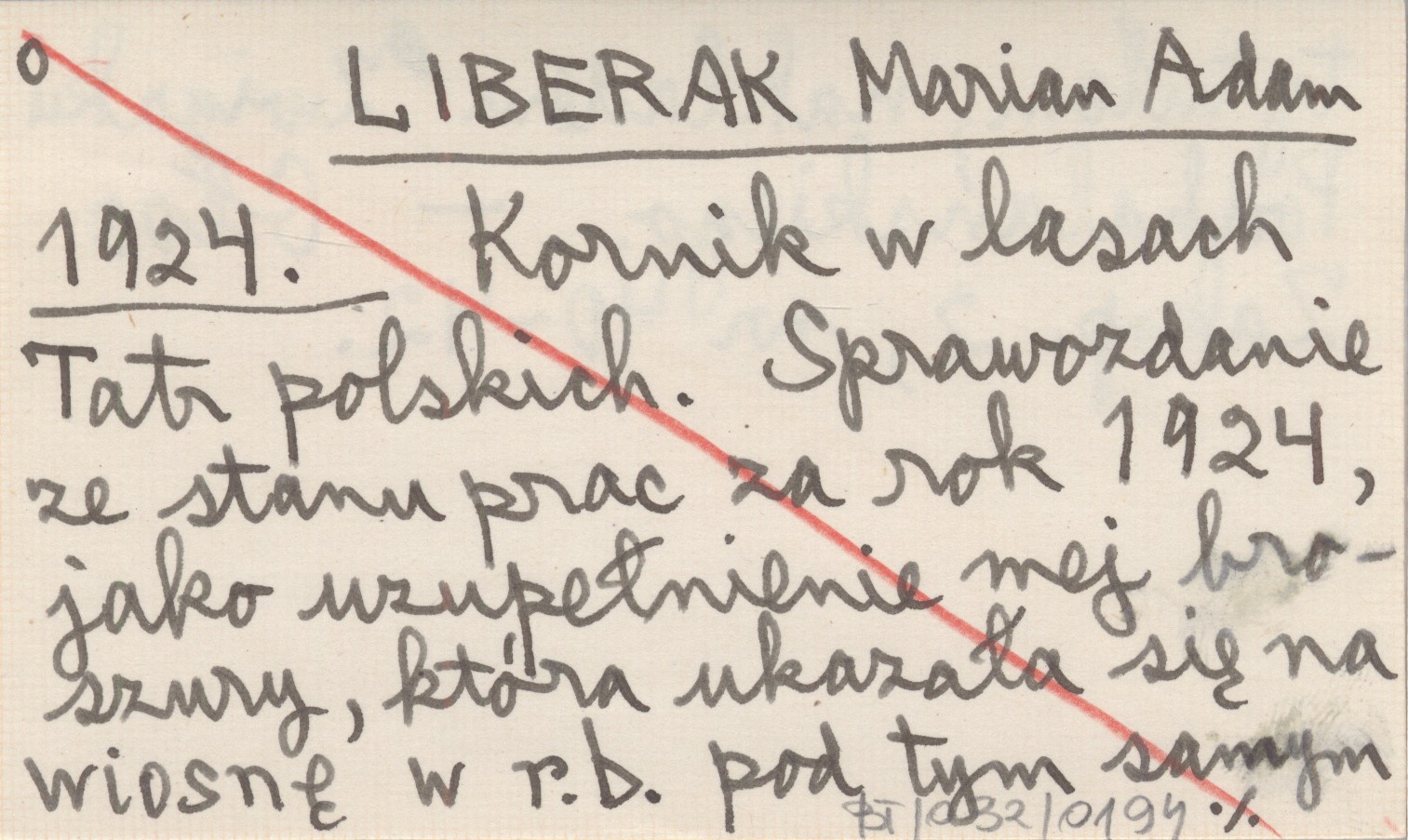 LIBERAK Marian Adam 1924 Kornik w lasach Tatr polskich. Sprawozdanie ze stanu prac za rok 1924, jako uzupełnienie mej broszury, która ukazała się na wiosnę w r.b. pod tym samym tytułem, nakładem Związku Podhalańskiego.