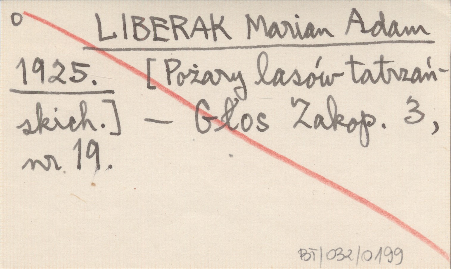 LIBERAK Marian Adam 1925 [Pożary lasów tatrzańskich.]