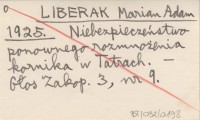 LIBERAK M. A. 1925 Niebezpieczeństwo ponownego rozmnożenia kornika w Tatrach.