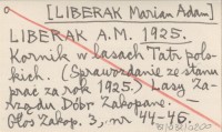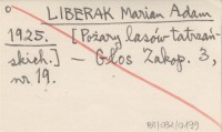 LIBERAK Marian Adam 1925 [Pożary lasów tatrzańskich.]