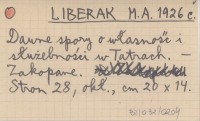 LIBERAK M. A. 1926 c Dawne spory o własność i służebność w Tatrach.