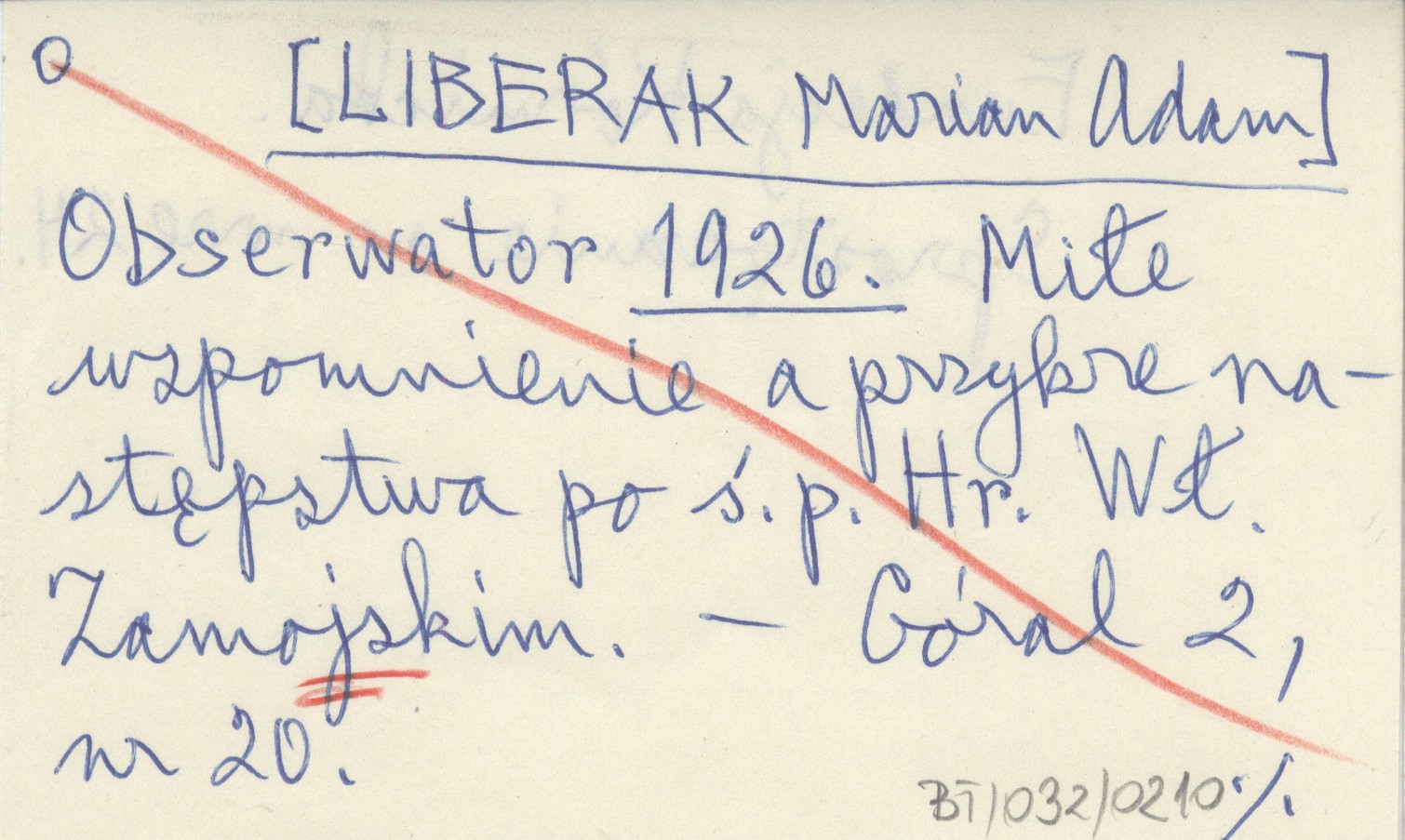 Obserwator [LIBERAK Marian Adam] 1926 Miłe wspomnienie a przykre następstwa po ś.p. Hr. Wł. Zamojskim.